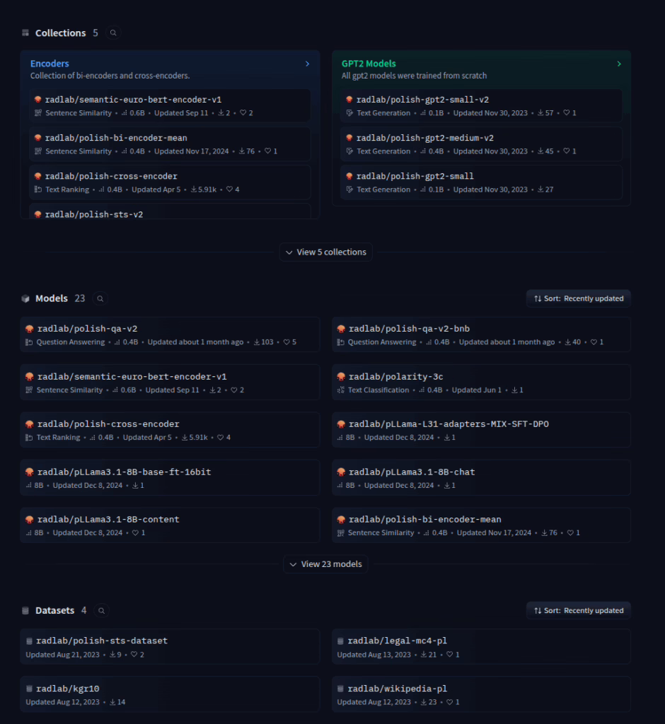 Na Huggingface udostępniamy modele i dane tekstowe